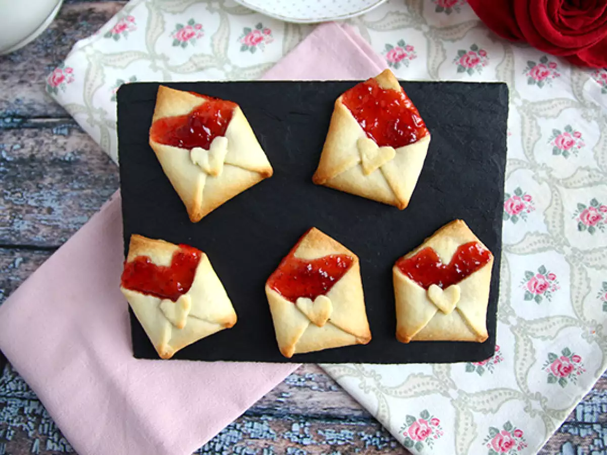 Kako bi za valentinovo napisali čudovito ljubezensko pismo svoji drugi polovici? Nimate navdiha? No, potem bomo ohranili idejo o pismu, vendar bo to užitno! Pismo je spremenjeno v marmelado, ki jo lahko vstavite v ovojnico v obliki peciva in zapečete z lepim srčkom. Ni slabo, kajne? Enostavneje kot pisanje pisma in zagotovo bo videti odlično ;-) Poleg tega potrebuješ le 2 sestavini! Neverjetno ;-) Sledite navodilom po korakih, kako pripraviti te sladke dobrote in kako jih zložiti, da dosežete ta lep rezultat.