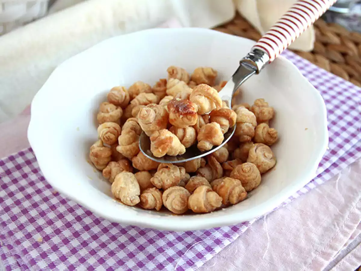 Če so rogljički okusni za zajtrk, si predstavljajte skledo, polno več deset mini rogljičkov! :D Vse, kar potrebujete, je 1 zvitek listnatega testa in malo sladkorja za karamelizacijo in že so pripravljeni! V manj kot 15 minutah boste imeli rogljičke, vredne vsakega miniaturnega kuharja! :D Postrezite jih s hladnim mlekom ali celo z jogurtom in sadjem na vrhu.