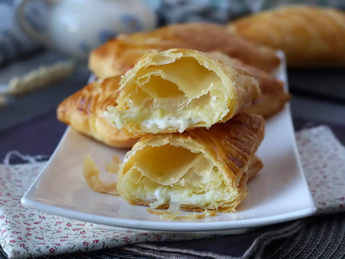 Zagotovo poznate znamenito žemljice s šunko in sirom ki smo jih kot otroci tako oboževali (in jih še vedno obožujemo...), zato vam danes ponujamo enako okusno in vegetarijansko različico: sirove in kremne rezine! S hrustljavim, zlatim listnatim testom in kremno sredico iz kreme fraîche in sira Comté so ti mali grižljaji idealni za aperitiv ali celo za popoln obrok ob solati! :-)